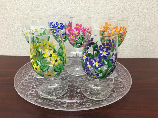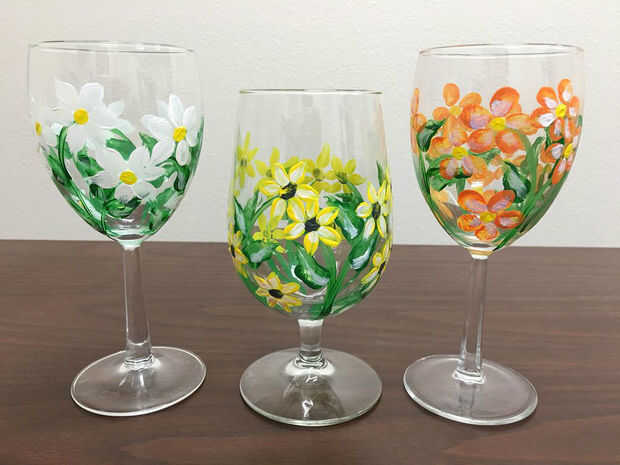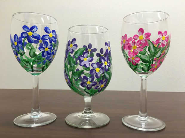 un conjunto barato de copas de vino puede ser disfrazado con alguna pintura de vidrio de la tienda de artesanía! Simplemente pintar remolinos alrededor de la parte inferior y la mejor parte de este proyecto, se recomienda imperfección! Se ve tan pers
