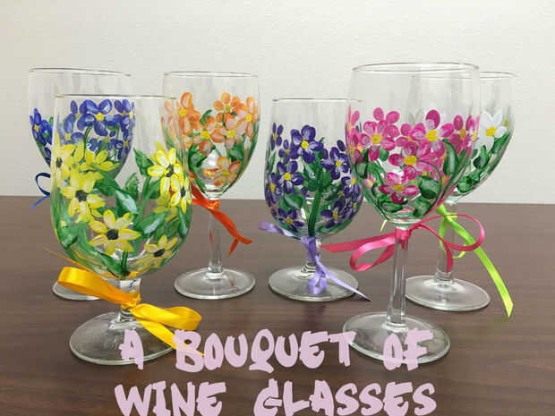 un conjunto barato de copas de vino puede ser disfrazado con alguna pintura de vidrio de la tienda de artesanía! Simplemente pintar remolinos alrededor de la parte inferior y la mejor parte de este proyecto, se recomienda imperfección! Se ve tan pers