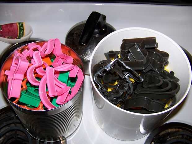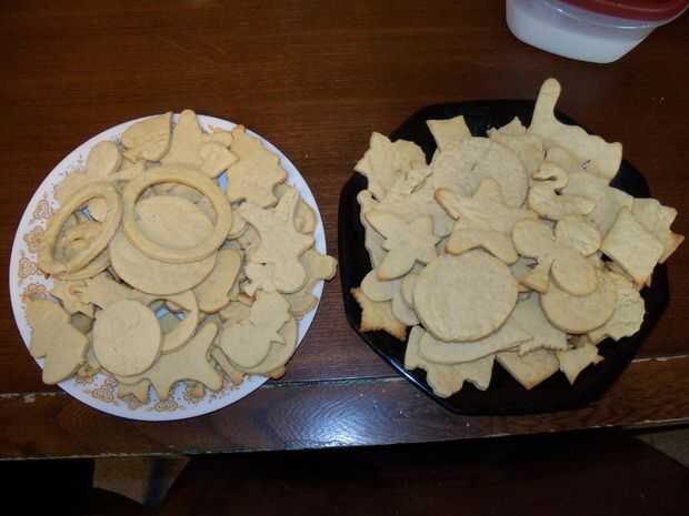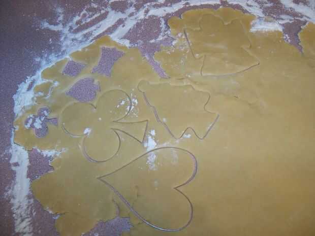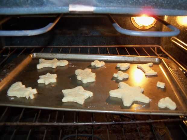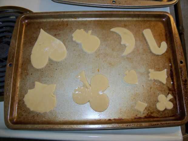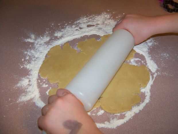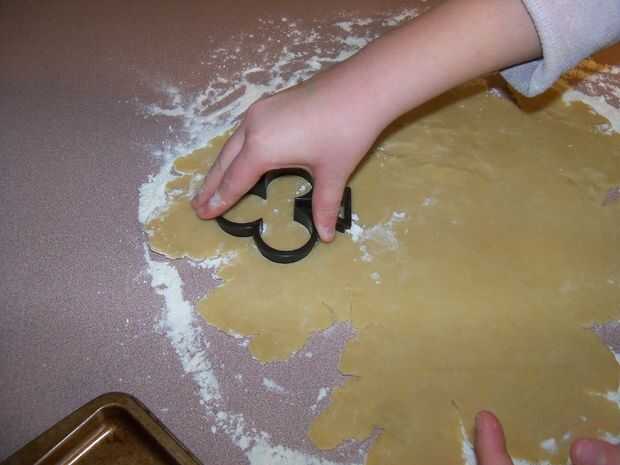 Una sección de tu contador de polvo con harina y estirar la masa a 1/8 a 3/16 pulgadas de espesor. Que sus niños aquí y cortar algunas galletas. Después de que has cortado como muchos como usted puede, puré hasta los restos, estirar otra vez y cortar algunas galletas más. Usted puede generalmente hacer esto tres o cuatro veces antes de que la masa ha metido demasiada harina mezclada. Aparte de los cortadores de la galleta, también me gusta tomar un par de vasos con diferentes aberturas de tamaño y hacer unas galletas redondas. Estos son buenos para pintar sólo lo que desea en lugar de sólo para colorear la forma.