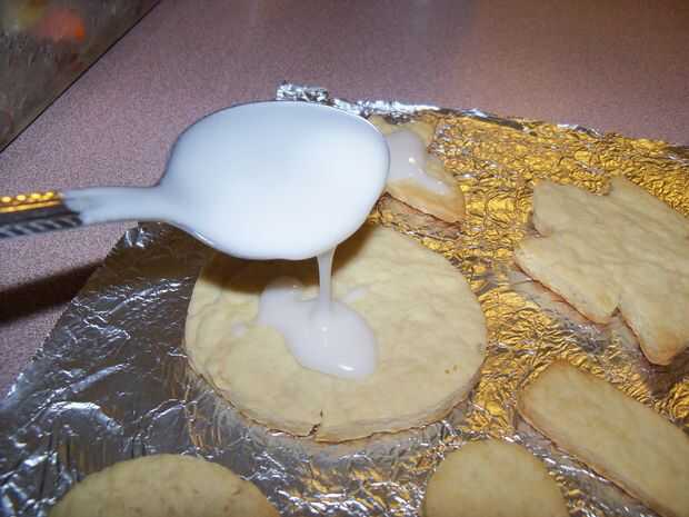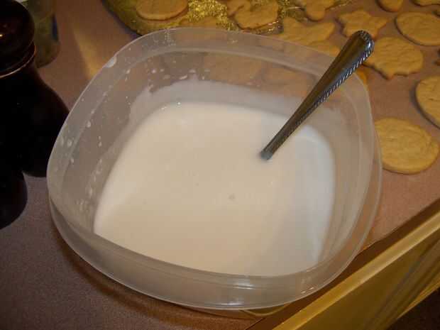Verter la bolsa de azúcar en polvo en un tazón y agregar 1 cucharadita de vainilla y aproximadamente 1/3 taza de agua. Mezclar bien. Desea llegar a un punto que cuando se pone en las galletas, estirar y suavizar en superior, pero no tan delgados que sólo se ejecuta fuera del borde. Te recomiendo llegar a un punto que parece justo a usted y la prueba por spooning algunos en una cookie. Si sólo se sienta allí como un pegote grande en la tapa, añadir un poco más de agua y vuelva a intentarlo. Si fluye apagado los bordes y no estancia poner, añadir algunos más azúcar.