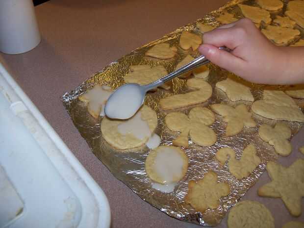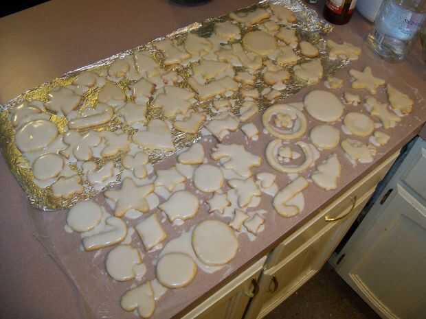 Una vez que ha esmaltado sus cookies, dejarlos reposar un rato para que el esmalte se configura. A veces, esto toma una hora, a veces tarda cuatro o cinco.
