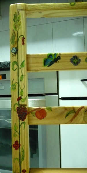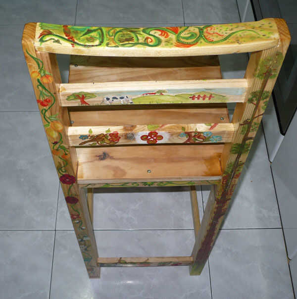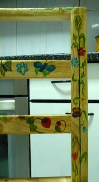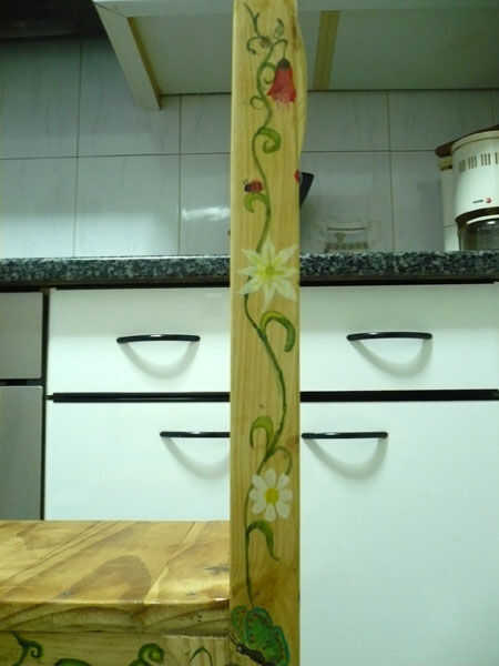 Mas de zonas es una de las bonitas, de la silla. Flores, mariposas, frutas y plantas. Empiezo haciendo los tallos de las plantas, con sus hojas. De vez en cuando, una flor.