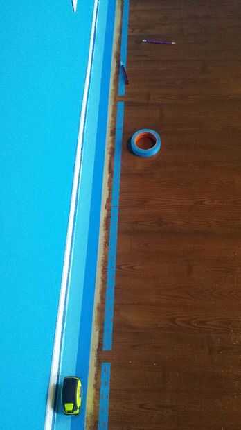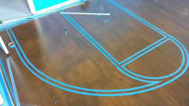 Una vez que el cuadro está en su lugar, tienes la base para empezar a grabar el arco de tiro libre y las líneas de 3 puntos. Parece intimidante cuando se empieza, pero usando pequeños trozos de cinta y mucha paciencia, realmente viene juntos bastante fácilmente.