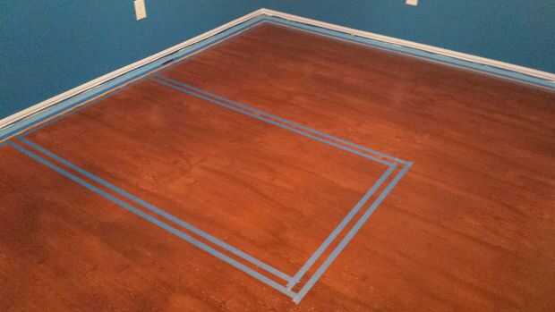 Para empezar, hemos añadido una línea de base alrededor de la habitación. Esto creó la separación de la frontera de la sala y los tablones y déjelo el Tribunal su propio. Luego empezamos a agregar la caja usada para el área de tiro libre clave. Es importante que todas sus medidas hacia abajo, como lo último que queremos aquí es que fuera del centro o torcida.