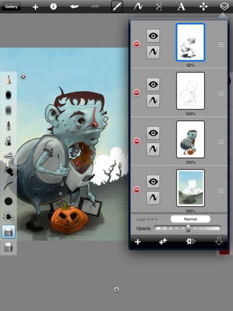 Trabajando en una capa sobre el uso de Zombie el aerógrafo y rocíe algún valor oscuro en las zonas que desea agregar las sombras. Ahora usando tus gomas blandas y duras para tallar lejos en las sombras y darles forma la manera que desea. A continuación, ajuste la opacidad de la capa por lo que la cantidad correcta de valor se coloca en al combinar la capa de sombra hacia abajo.