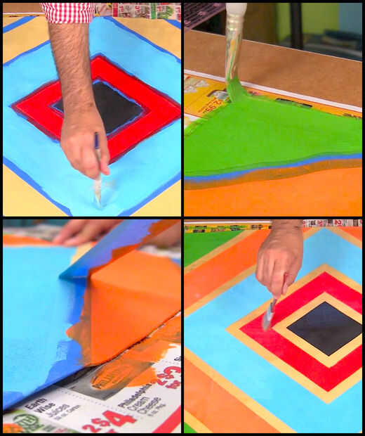 Retirar la cinta cuando es seco y cubrir la parte delantera y trasera de la alfombra con Minwax Polycrylic