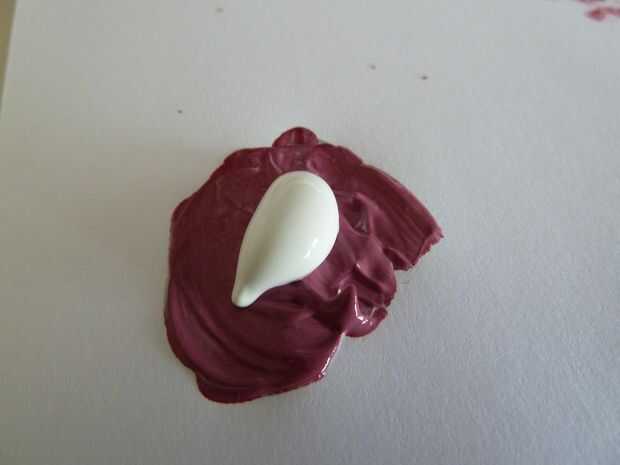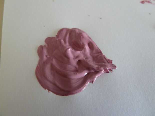 Gris, rojo oscuro + blanco, añadir rojo oscuro a gris hasta color rosado oscuro (color de fondo en el cuadro 4), agrega blanco hasta el rosa tiene el color que quieras que sea.