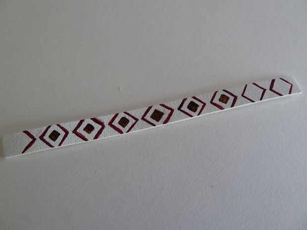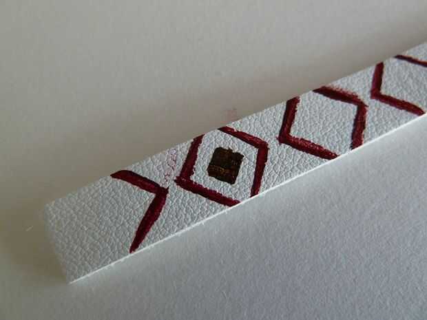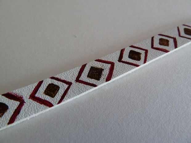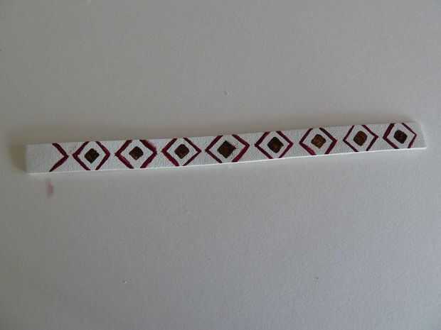 Tomar la pintura marrón y pintura plazoleta en medio de las líneas, dejando espacio a los lados de sus líneas de color rosa. No necesita ser perfecto, sólo más o menos siguiendo el patrón será trabajar. Para estas plazas, una capa será suficiente.
