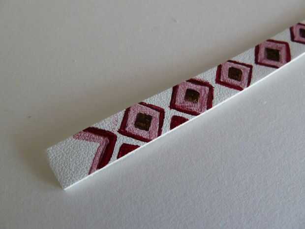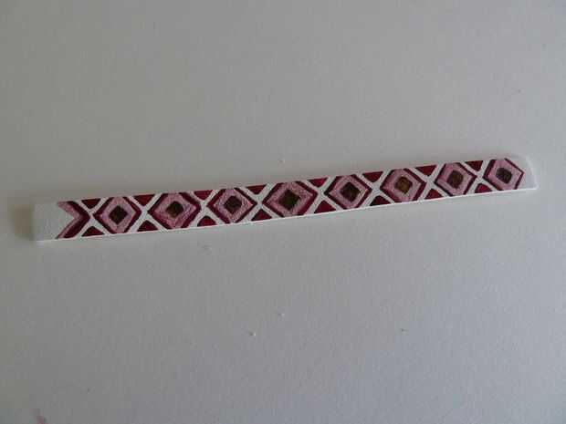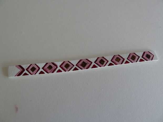 Para llenar el vacío un poco, pintar triángulos pequeños de pintura roja oscura en los espacios en blanco en forma de triángulo. Al igual que al pintar las plazas marrón, dejar espacio a los lados.