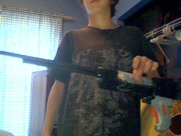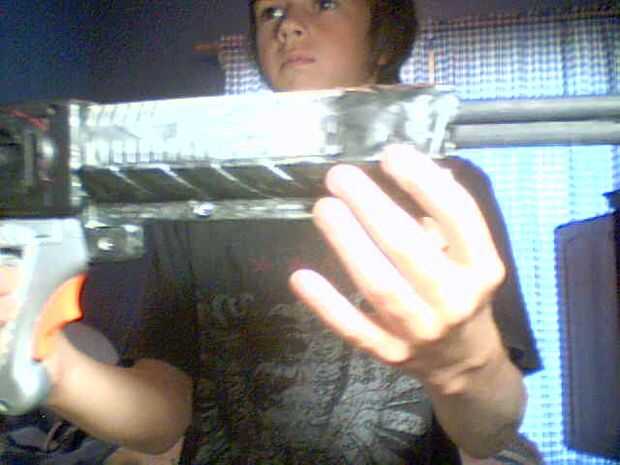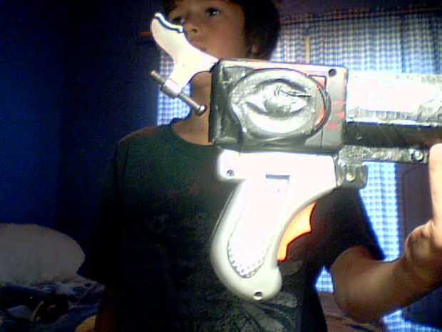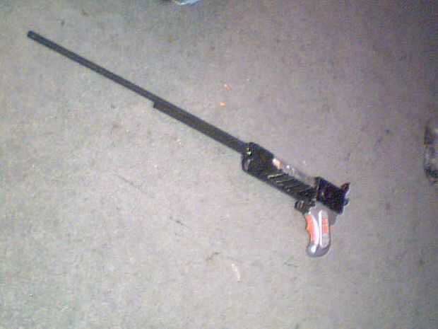 [por cierto, voy a seguir para la construcción de esta propuesta en los próximos días.]Este instructivo describe cómo hice un rifle de caza de combate para ir con traje de huargen de mi hijo para Halloween 2011. Diseño del rifle fue fuertemente influ