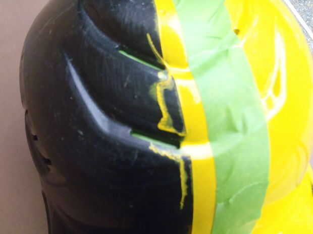 primero imprimir plantilla para la parte delantera del casco en tarjeta y cinta adhesiva en su lugar. utilizando palos de madera fortalecer...Paso 1: cortó la hoja de fibra de vidrio en la misma forma que la impresión luego pintar encima con la resin