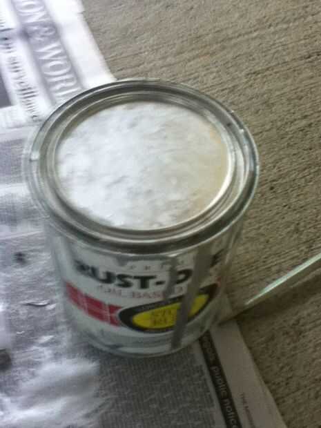 1: 2 la jarra de la leche: pintura Rustolium 3: pintar mezclador y cepillos 4: Diario 5: cepillo de Metal