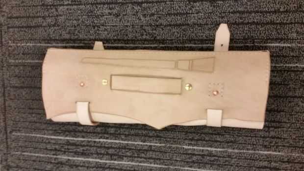 Había visto el lápiz pequeño rodillo y preguntó a Isaac que si quería que algo como eso para su dibujo, luego mencionó sus pinceles de dolor fueron un desastre, y que sería algo para mí hacerlo. Pedí un par de pinceles y tuve una idea de qué tamaño tenía que hacer. Llegué a Tandy, comprada algunos cuero ligero.