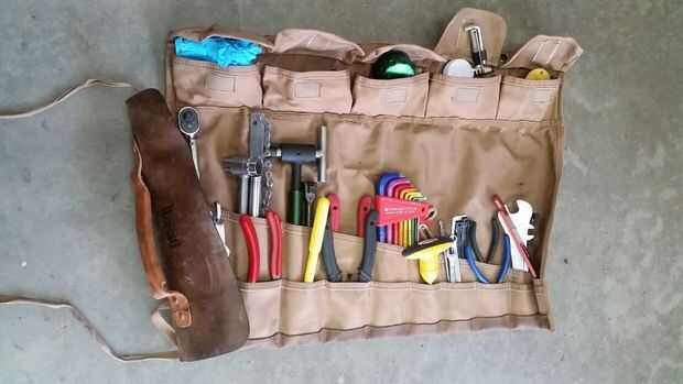 Empecé esto como una experiencia de aprendizaje para trabajar en el rodillo de la herramienta para mis herramientas de ciclismo--con algunos de mis favoritos Herramientas de Abadía. Actualmente utilizo una herramienta de Duluth Trading Company del rodillo, pero es un toque pequeño y ya he tenido que añadir algunas personalizaciones, como el mango en el 'overflap' y guía de agujeros (no foto) en el 'overflap' para mantener las correas se deslicen.