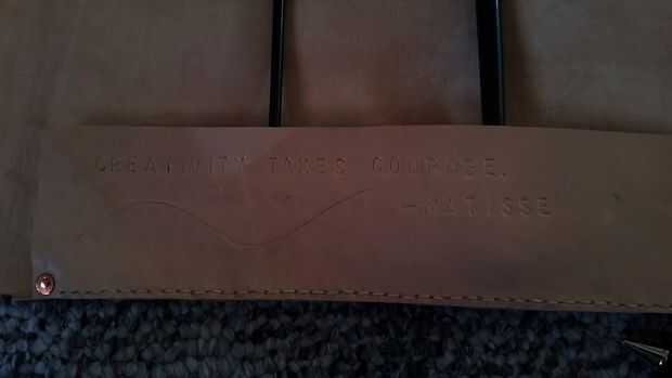 Quería añadir algo a las aletas ya que eran un lienzo tan grande. Mi novia y yo hicimos algunas búsquedas y encontró la cita de Matisse. Originalmente quería un par más, pero muchos de los comentarios eran exageradas, o demasiado largo.