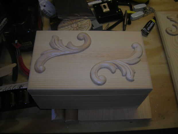 Retire las bisagras y los pies (si hay) de la caja. Asegúrese de que usted pone en un lugar seguro. Mina la puse en una bolsita de sandwich y pegadas a la pared por encima de la mesa de trabajo.