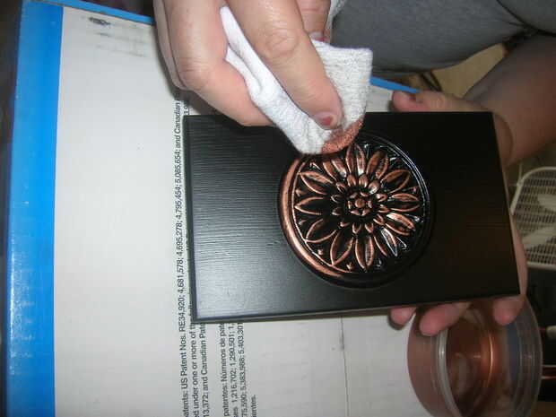 Romper su calcetín callejero y un plato desechable. Rocíe un pequeño charco de pintura metálica en el recipiente. Utilice el calcetín para dab y agitar la pintura sobre el cuadro. Esta es la divertida parte. Vaya loco.