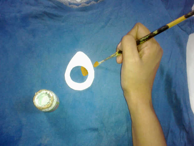 círculo con borde amarillo del color y la pintura con el color blanco de la pintura, le dan touch.and final su hecho.