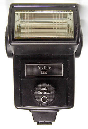 La otra pieza clave del equipo es un flash electrónico. En el momento tuve un flash con sólo un poco menos salida que un Vivitar 283. Un par de años más tarde tuve un 283, demasiado. Establecer el tiristor automático para una abertura de f/5.6. Si tu flash no tiene ningún tiristor automático, sólo que flash a plena potencia. Siempre me preocupaba acertar con la exposición al pintar con la luz, pero ha sido mi experiencia con varios intentos de que es un proceso mucho más indulgente de lo que imaginaba. Disparará el flash pulsando el botón de descarga manual en la parte posterior del flash.