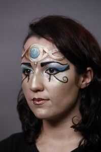 Tutorial de maquillaje y disfraces de Halloween CleopatraPaso 1: traje En primer lugar, tomo una camisa vieja de la tapa y pintar con pinturas acrílicas. (perdón por el error de ortografía en la foto)Luego tomar un otro uno (camisa superior) y corte