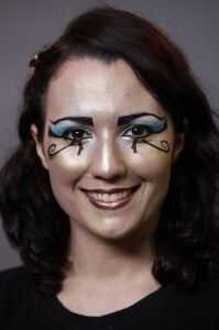 Tutorial de maquillaje y disfraces de Halloween CleopatraPaso 1: traje En primer lugar, tomo una camisa vieja de la tapa y pintar con pinturas acrílicas. (perdón por el error de ortografía en la foto)Luego tomar un otro uno (camisa superior) y corte