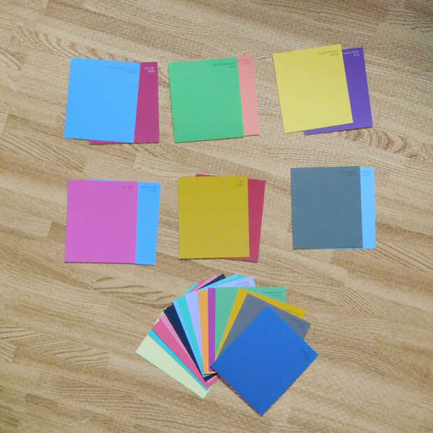 1. Cortar 14 fichas de pintura a tamaño deseado – más estrecha de los reservados para los meses. Este paso es opcional, sin embargo, quería mis números para ser más estrecha de los meses.