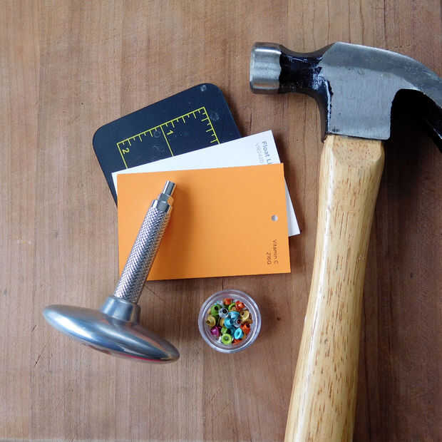 5. Coloque el ojal en el agujero y con setter ojal y un martillo. Si no tienes un setter de ojete, seguramente no exactamente cómo haría este paso. Cualquier sugerencia seria genial!