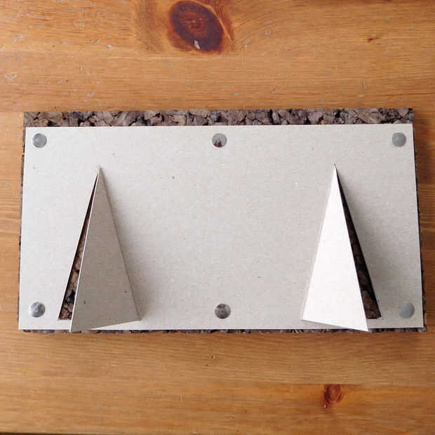 1. Usar las chinchetas planas, virar el aglomerado en la parte posterior de la Junta de corcho.