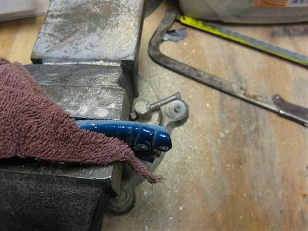 Cerrar el campo de la pintura en la prensa. Envuelve el trozo de pintura con una toalla para reducir la posibilidad de rotura (de la prensa).