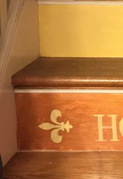 Me siento orgulloso de decir que lo único trazó era la flor de lis en paso de la Santa Biblia. Encontré una imagen en la computadora e imprime. Luego cortar la flor de lis forma, había grabado en el paso y había trazado con un lápiz. Sólo vuelta a la forma y había trazado otra vez para el de la derecha. Luego lo pinté en con mi cepillo más pequeño.