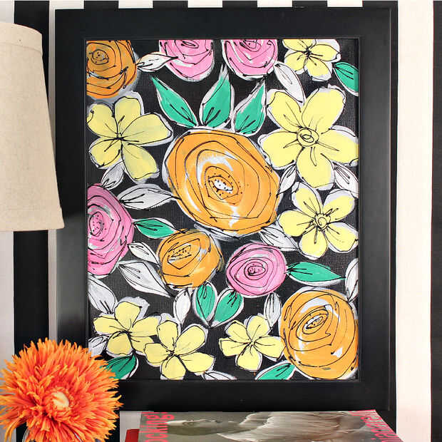 Hacer un divertido floral pintura con este fácil tutorial paso a pasoPaso 1: Ver el corto video tutorial aquí!Acelerar y seguir la diversión!Paso 2: Usted necesitaráAllure Dimensional diseño adhesivo pintura (puff)Americana de acrilicosLienzoCepillos