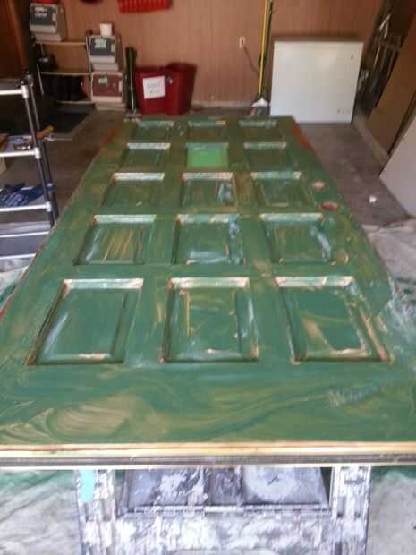 Después de aproximadamente una hora la pintura debe burbujear para arriba. Parece bruto, pero las capas de pintura deben deslizarse fuera. Use un raspador plano para raspar la pintura. Habrá zonas que no vienen para arriba tan fácilmente y requieren grasa de codo. Los paneles pequeños en la puerta eran los más difíciles. Toma tu tiempo y utilice una esquina rascador pequeño para bajar en las ranuras. Utilizar algunos alcoholes minerales y stripping pads para obtener cualquier pequeños fragmentos que sólo no darán para arriba. Sugerencia - use una aspiradora de taller para ayudar a deshacerse de los desechos mientras se trabaja en espacios reducidos.