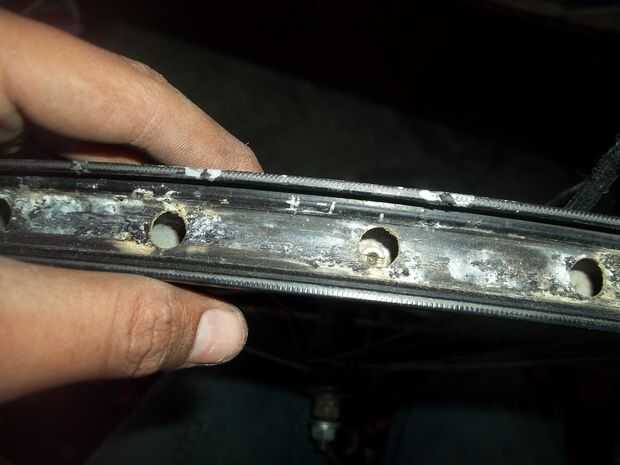 El borde de los neumáticos contiene tuerca pequeña como los cuadros segundo en una que pueden ser fácilmente Quite con un destornillador largo cuello. Tienes que siempre cuidado al quitar las tuercas que pueden deslizar dentro de la llanta y pueden ser difíciles de eliminar, para evitar esto siempre antes de las tuercas es totalmente losen utilice un palillo para sujetar la tuerca de la tapa donde se le da a un agujero.