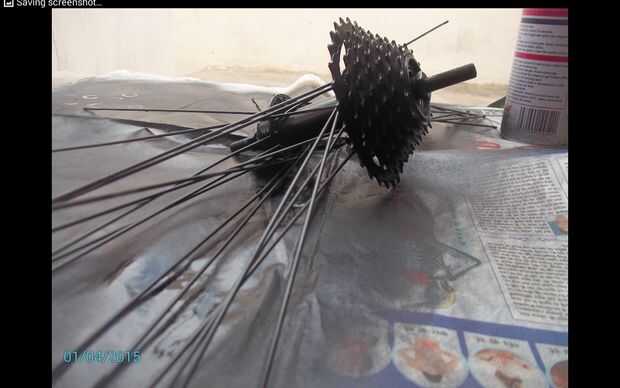 Aquí es otra gran manera de reutilizar esa basura que se encuentra alrededor de la casa. Una vieja llanta de bicicleta es una base ideal para un reloj. La llanta que perteneció en mi bicicleta de carretera de amigos antes de que corrió sobre él con s