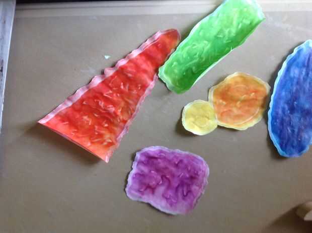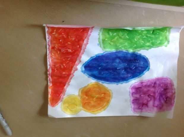 Elegir un color y una pintura en una sección de la página con el color del agua. Puede mezclar otros colores con esa sección, sólo asegúrese de que está bien si mezcla. Cuando tenga el color que desee, unte pegamento sobre ella mientras la pintura esté húmeda. Puede propagar con la boquilla Si desea que el papel de textura. Pasa nada si el espesor del pegamento no es coherente cuando todos, pero el grueso del pegamento, más rico será el color. También si no espesa lo suficiente no es cerosa, así que es mejor hacer que la mayor parte de la sección es blanco con pegamento. Repetir este proceso por toda la página, dejando espacios entre diferentes colores. Cuando termine, puede dejar secar. Una vez dura y cerosa puede mover al siguiente paso.