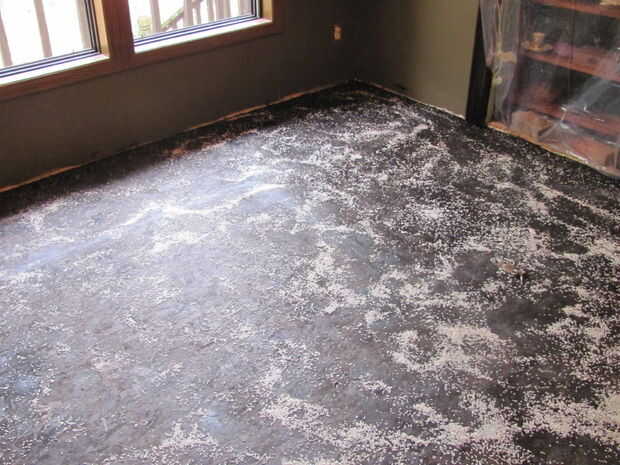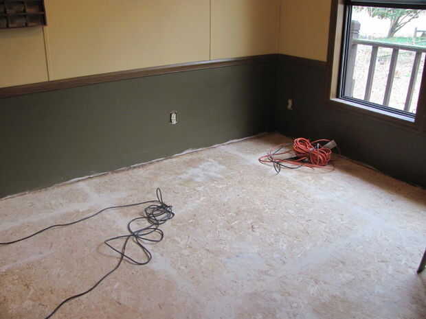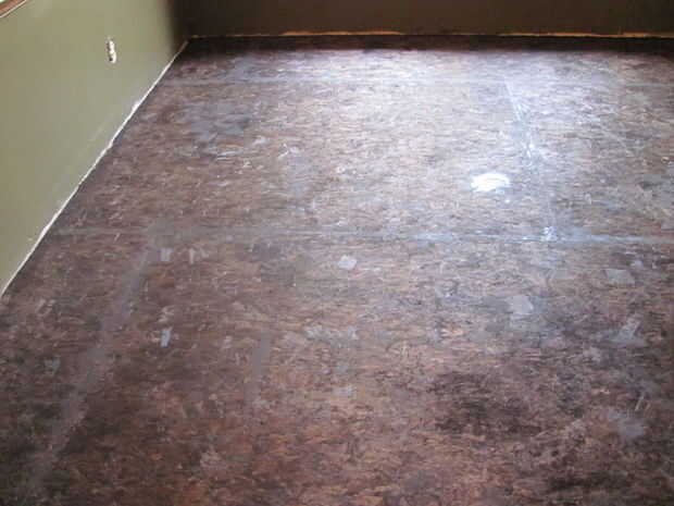 Después de la alfombra hacia arriba y afuera... ¿Me pareció adivinar lo que? Tablero de madera aglomerada... ¡ OH NO!