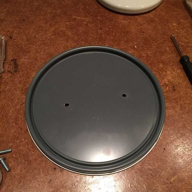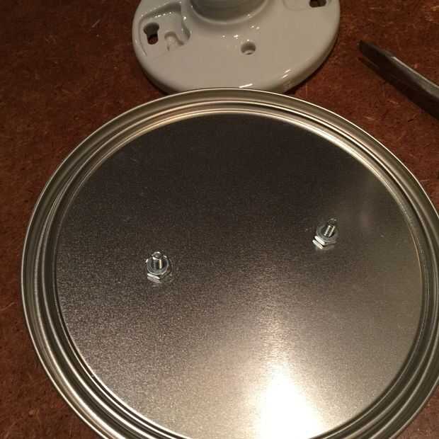 Con una broca adecuada, preparar la tapa con agujeros que se alinean con los agujeros en el soporte. Asegúrese de que los Centre el soporte de primera. Utilice sus tornillos y tuercas para sujetar firmemente el soporte.