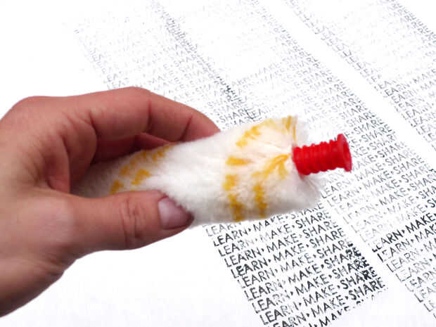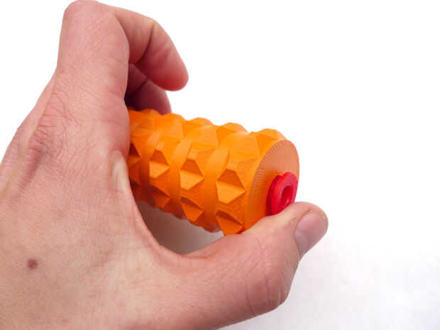 Quitar la clavija plástica en el rodillo de pintura e inserte en su recién impresa rollo!