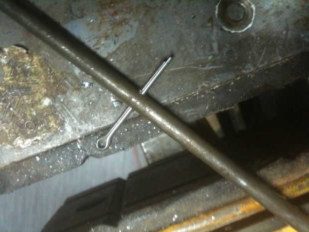 Inserte el perno a través del orificio y coloque la barra en la jaula.