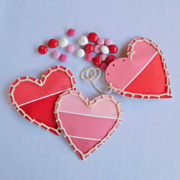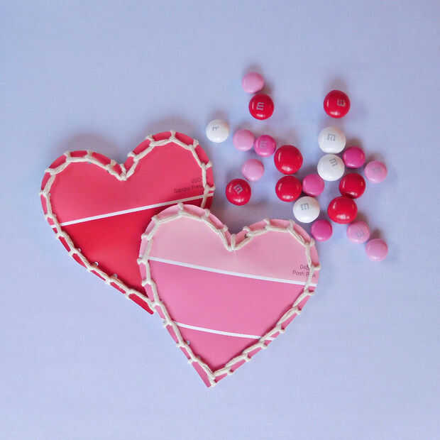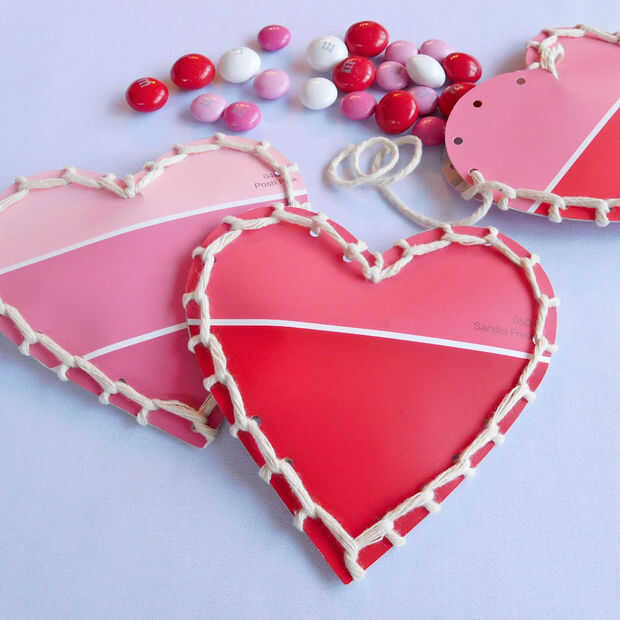 Reconozco que soy algo adicto a virutas de la pintura. ¿Cualquiera otro procede a la sección de viruta de pintura en la tienda de mejoras para el hogar incluso si usted no tiene plan de pintura? Es una fiesta visual. Me encanta mirar todos los colores, tomar muestras de algunos (o varios) y se preguntan qué algunos de los colores pueden ser apuntarle usado... y eso es decir mucho viniendo de alguien que tiene un martini verde (me encanta los nombres de los colores!) sala de estar! Ya que tengo un cajón que se ha llenado con la pintura de chips que pensaba que debo hacer algo con ellos. Con San Valentín a la vuelta de la esquina esto fue un comienzo apropiado y simple para tratar de disminuir mi escondite!!