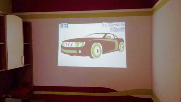 Para la siguiente parte utilicé mi cámara y un proyector para proyectar la imagen de Inkscape en la pared (Foto 2). Yo dibujada el contorno de la atención en la pared (Foto 3) que terminó para arriba como la foto 4.
