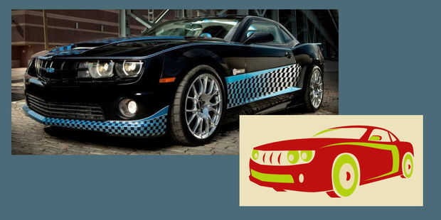 Le mostré un montón de coches, y escogieron en la primera foto de este paso. Arrastró en Inkscape como fondo y diseñados que además de él (encontrar svg archivo adjuntas).