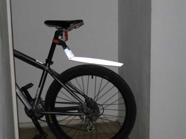 Elegí una parte fácil de mi moto a "reflectablize" como diría uno de mis amigos. Un guardabarros desmontable que sobre todo nunca separar.