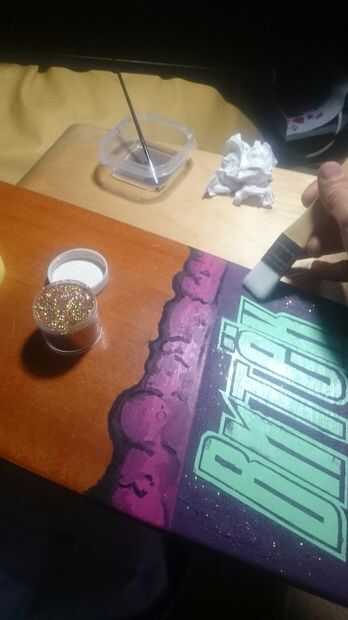 Para este proyecto, he pintado un patín usado. Primero lija y lo preparado y limpiar la cinta de agarre. Por supuesto, también se puede utilizar un tablero en blanco.Al final tiene un nuevo monopatín gráfico o si es demasiado viejo puede utilizarlo c