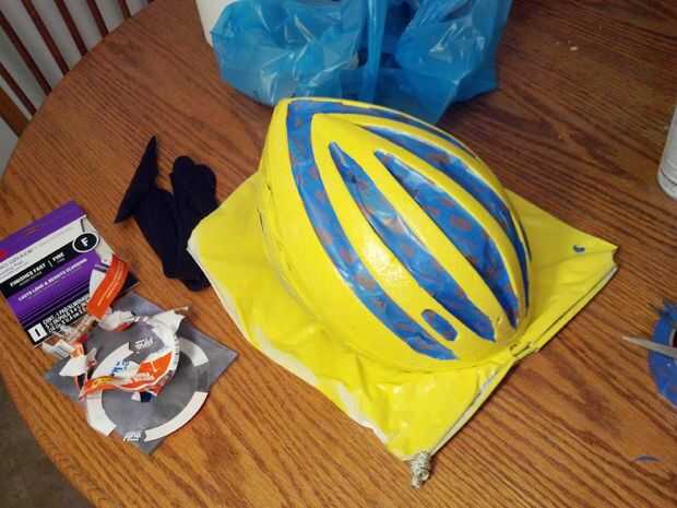 compartir un amor de bicicleta y de Capitán América con mi hijo. Su casco de la bici fue robada de su recipiente de almacenamiento de la escuela un tiempo atrás y director de la escuela fue suficiente para darle un nuevo casco de moto azul. No era