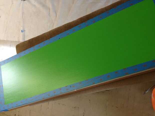 Ahora que la imprimación haya secado puede abrir la pintura verde e inició en la pintura con un 2 o 3 en cepillo de la espuma. Aplicar 2-3 capas o hasta incluso sin poder ver la cartilla.