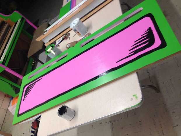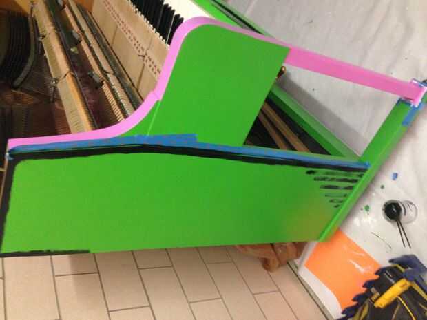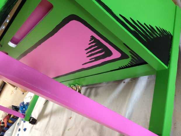 Aquí está la parte cuando tu creatividad puede venir a la vida. No es ninguna ciencia exacta a esta parte y puede esbozar su diseño en papel para asegurarse de que es atractiva a los ojos. Opté por pintar las patas y clave volutas de color de rosa. En el panel inferior he pintado un rectángulo rosa 3 pulgadas desde el borde y luego había contorneado áspero en negro con un pincel de artistas. A los lados me había pintado gotas negras adyacentes y había contorneado el borde frontal de los laterales en negro. Los bordes de la tapa superior tiene el mismo tratamiento. La parte delantera debajo de donde van las llaves fue delineada en negro y las áreas donde no hay nada pasando. No dude en cambiar el diseño a tu medida. Hay no cobra aquí porque he pintado mirando fotos y solo de pensar... Donde necesita más diseño. Encintado de zonas no quieres pintura es necesaria y hará que todo el proyecto parece más nítida y limpia.