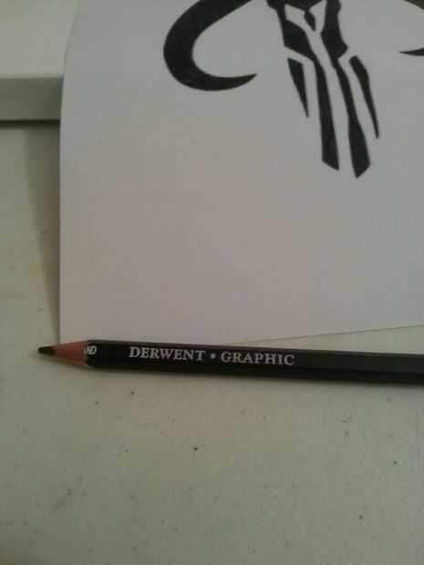 Luego tomar este lápiz de plomo de pesado y rastrear las líneas de atrás de mi plantilla. Luego coloque mi plantilla y trazar las líneas y transfiere la ejecución a mi superficie de trabajo. Esto hace más fácil para aquellos de nosotros con ningún talento artístico.