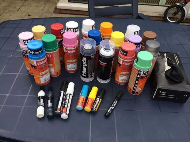 También usé una mezcla de negro marcadores gruesos especialmente diseñado para ser utilizado en paredes. Marcadores de graffiti realmente y lo que realmente quería usar estas porque tienen un rectángulo o cuadrado-como punta. Que manera fácilmente podía crear contornos negro muy apretados alrededor de los personajes y Déjame decirte: el momento de dibujar los contornos alrededor de ellos... te sorprenderá sobre cómo sólido se ve en tu muro!! ¡Confía en mí! La gente pensaba que tenía retocado las fotos finales ;-)