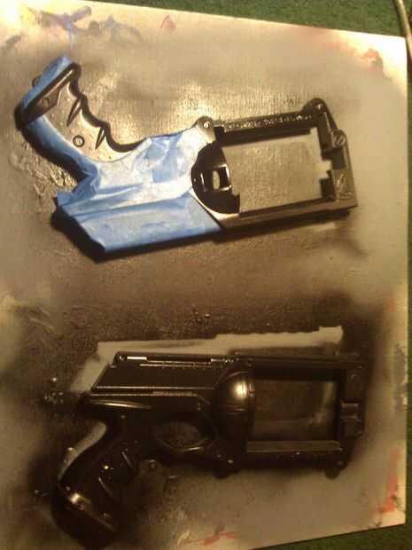 estaba dada la asignación en el trabajo "mod" esta pistola para el lanzamiento de un cliente, me decidí a pintar y unos LEDs (lamentablemente los LEDs no entrenamiento, pero lo de la pintura). Así que oye un paso a paso cómo lo hice y algunas c